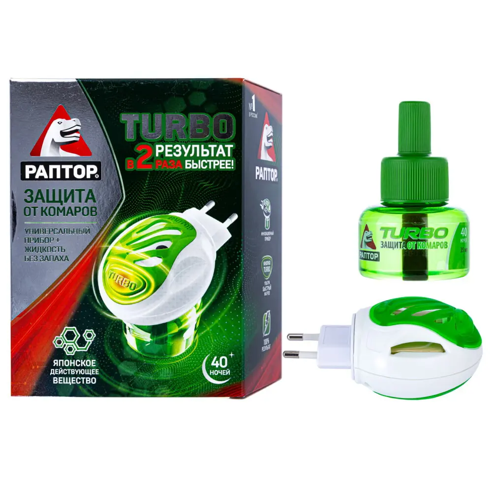 Раптор TURBO электрофумигатор и жидкость от комаров (без запаха), 1 шт