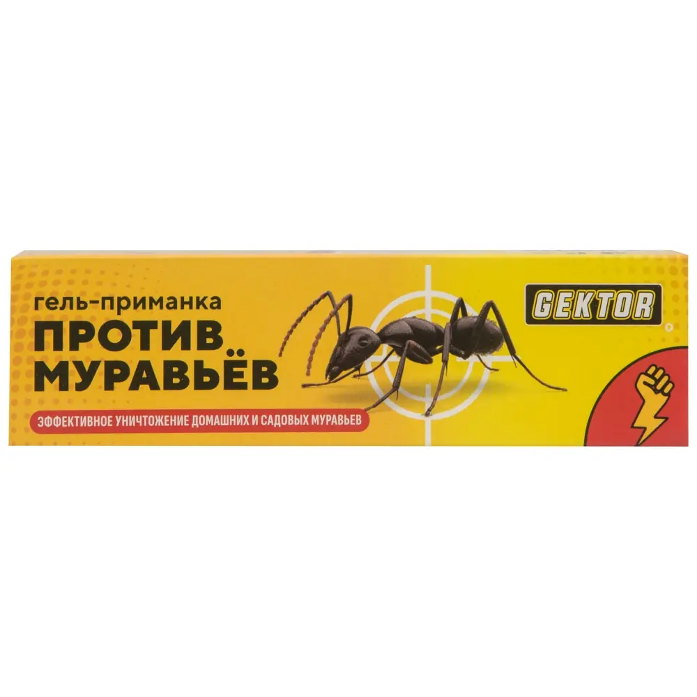 Gektor (Гектор) гель от муравьев предназначен для уничтожения муравьев в жилых и нежилых помещениях, а также на приусадебных участках. Эффективен против рыжих домовых, садовых, фараоновых и других видов муравьев.