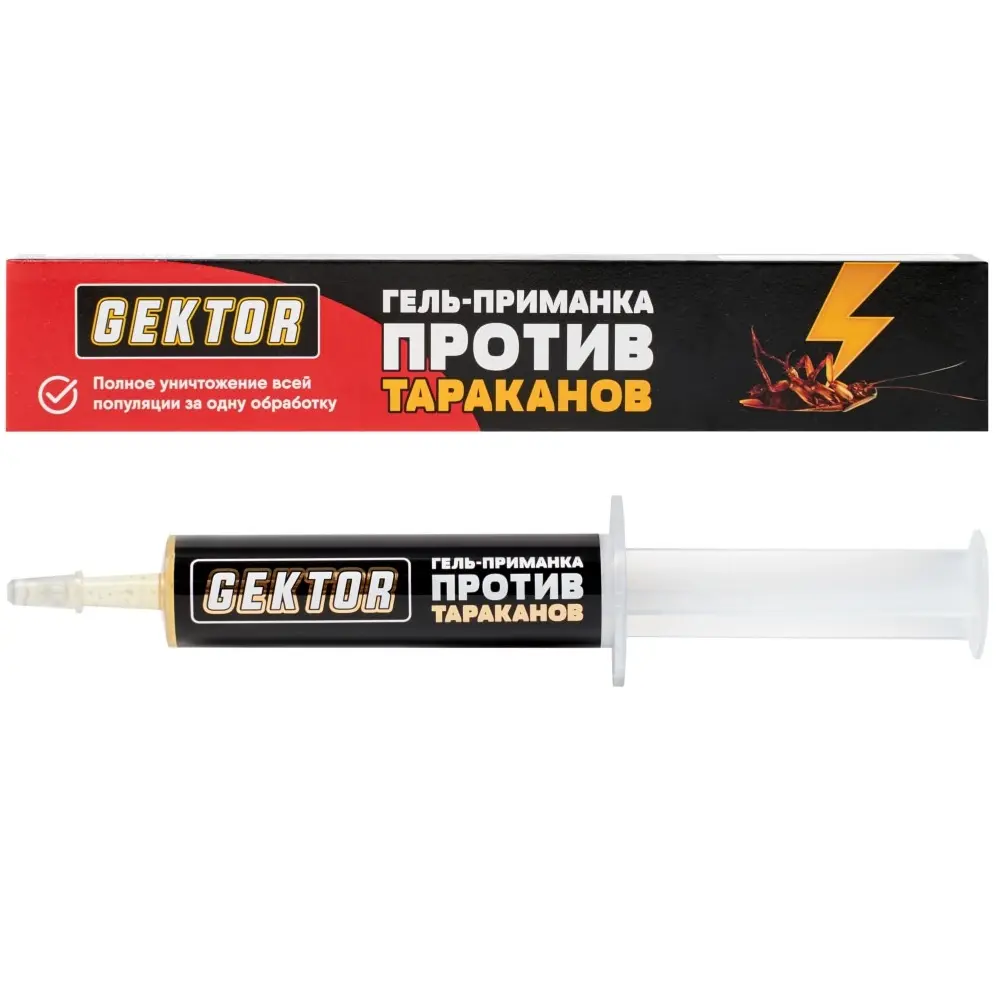 Гель Gektor (Гектор) предназначен для уничтожения рыжих и чёрных тараканов, сверчков и чешуйниц. Запатентованная формула тройного действия обеспечивает полное очищение помещения и предотвращает повторное появление насекомых.