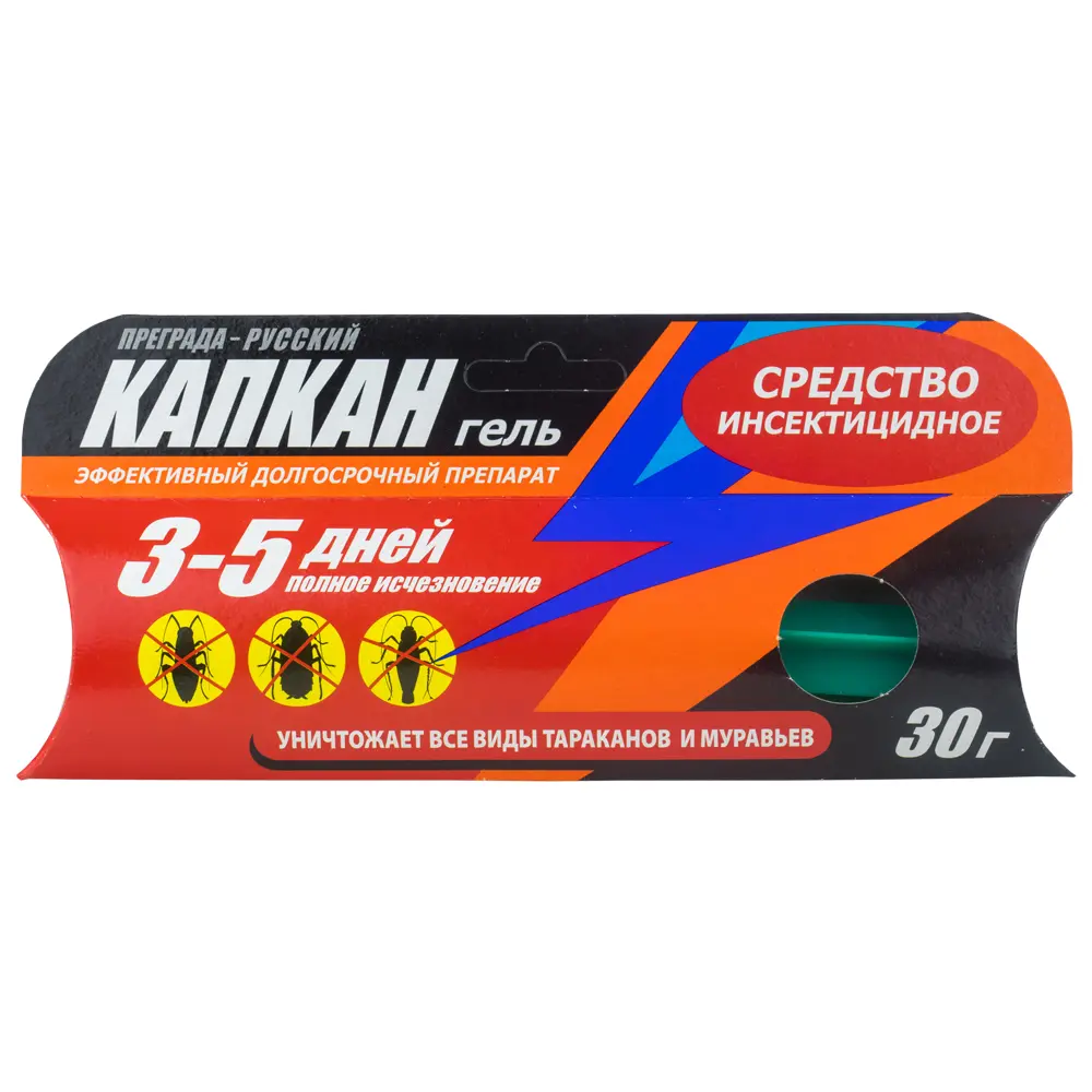Преграда – Русский Капкан гель от тараканов и муравьев — инсектицидное средство в виде густого геля от белого до бежевого цвета. Удобная упаковка-шприц позволяет быстро и равномерно нанести гель на любые поверхности, а плотная текстура гарантирует экономичный расход даже при необходимости нескольких обработок.