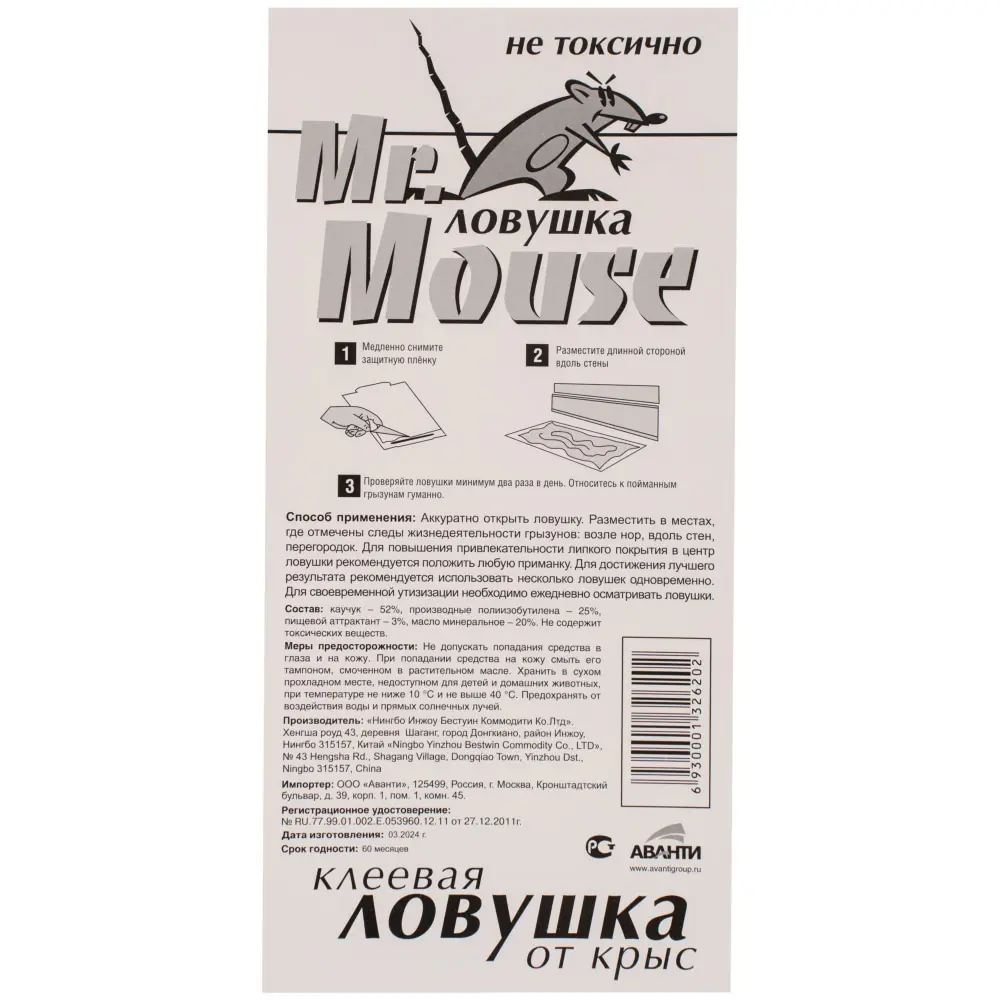 Mr. Mouse клеевая ловушка от крыс (пластина) — простое и удобное средство для борьбы с грызунами. Абсолютно экологичное и безопасное для всех членов семьи. Единственное, о чём стоит позаботиться — разместить пластины в местах, недоступных для домашних животных. Такая обработка не сопровождается ядовитыми испарениями, поэтому подходит даже для помещений, где проживают аллергики или дети.