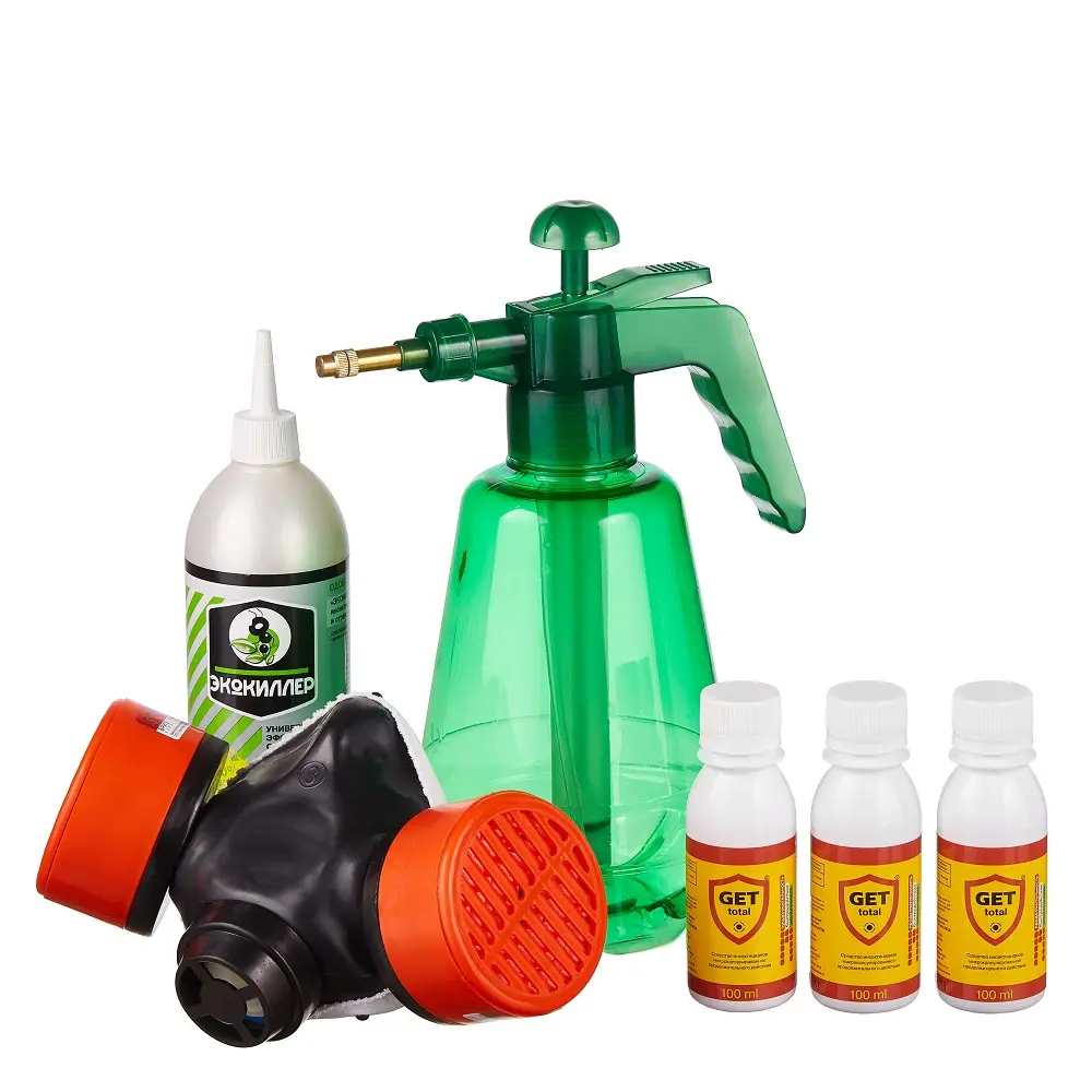 | Комплектация | 3 Средство Гет, Опрыскиватель ручной, 1,2 л, Респиратор БРИЗ-3201 (РУ-60М), Средство Экокиллер |