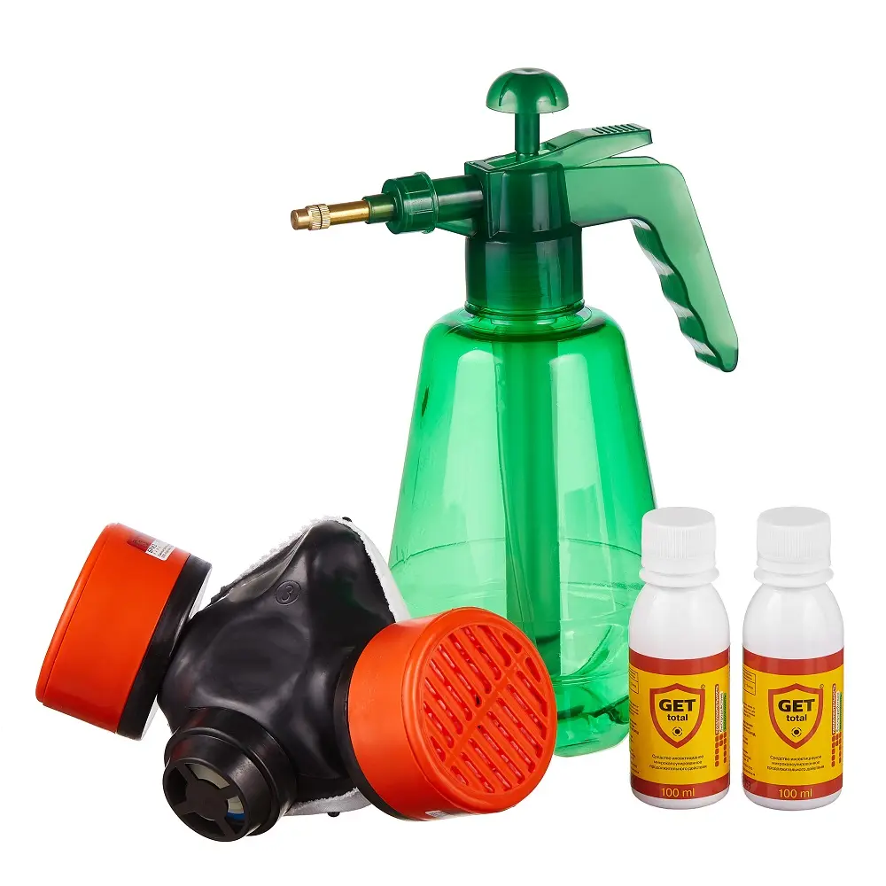 | Комплектация | 2 Средство Гет, Опрыскиватель ручной, 1,2 л, Респиратор БРИЗ-3201 (РУ-60М) |