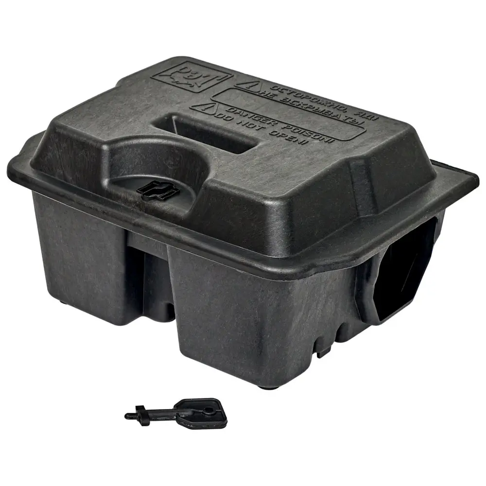 - Защита приманки: контейнер предохраняет родентицид от дождя, снега, пыли и других внешних факторов, сохраняя его эффективность на длительный срок.