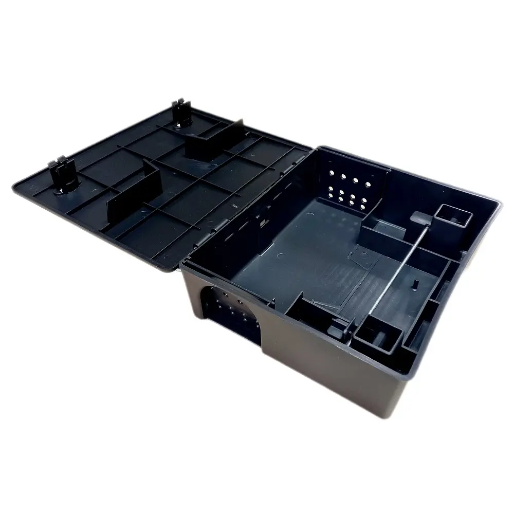Контейнер Приманочный-Ловушка представляет собой прочную пластиковую коробку с двумя входными отверстиями, специально спроектированными для свободного перемещения грызунов. Внутри имеется изолированное отделение для надёжного размещения родентицида (приманки). Закрытая конструкция защищает приманку от пыли и влаги, одновременно исключая доступ детей и домашних животных.