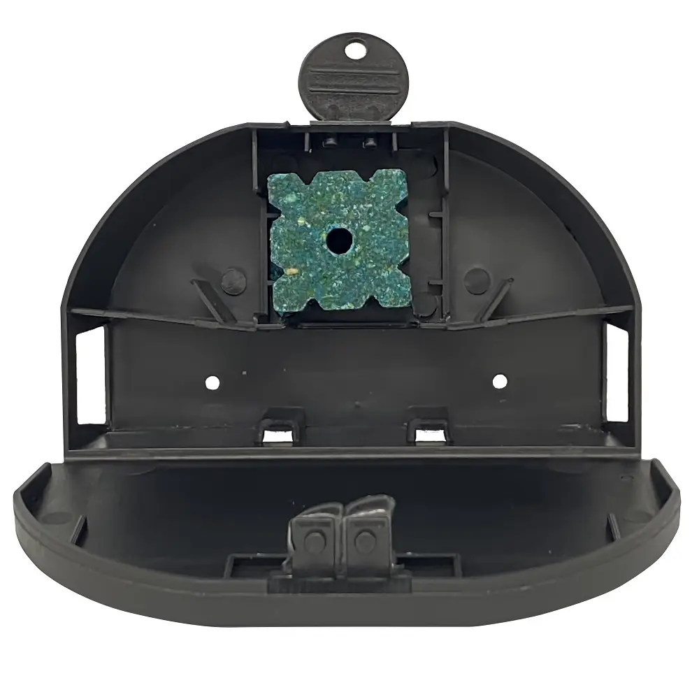 Откройте ловушку при помощи ключа, нанижите подготовленную приманку на спицы и закройте бокс. Разместите станцию в местах появления грызунов. Проверяйте в зависимости от интенсивности проявления вредителей. При срабатывании откройте замок ключом, извлеките содержимое и обновите приманки. При установке нескольких станций соблюдайте расстояние между ними от 6 до 10 метров для наилучшей эффективности.