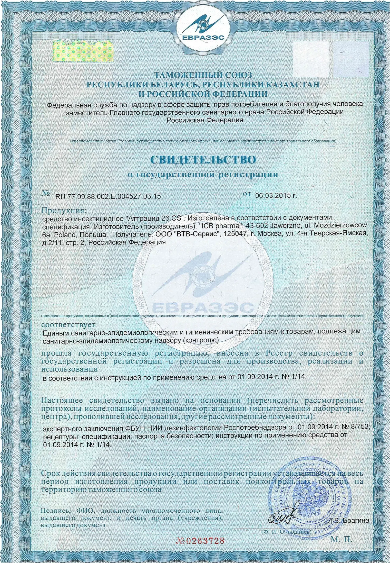 | Норма расхода препарата | 5 - 10 мл / 1 л воды |