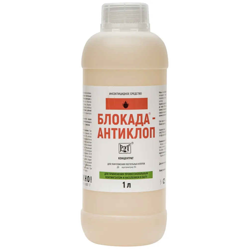 Блокада-Антиклоп — профессиональный инсектицид на основе ацетамиприда 5%. Препарат выбирают дезинсекторы за быстрое уничтожение постельных клопов и других синантропных вредителей. Широкий спектр действия, отсутствие запаха и совместимость с любыми типами помещений делают его настоящим must-have для эффективной дезинсекции.