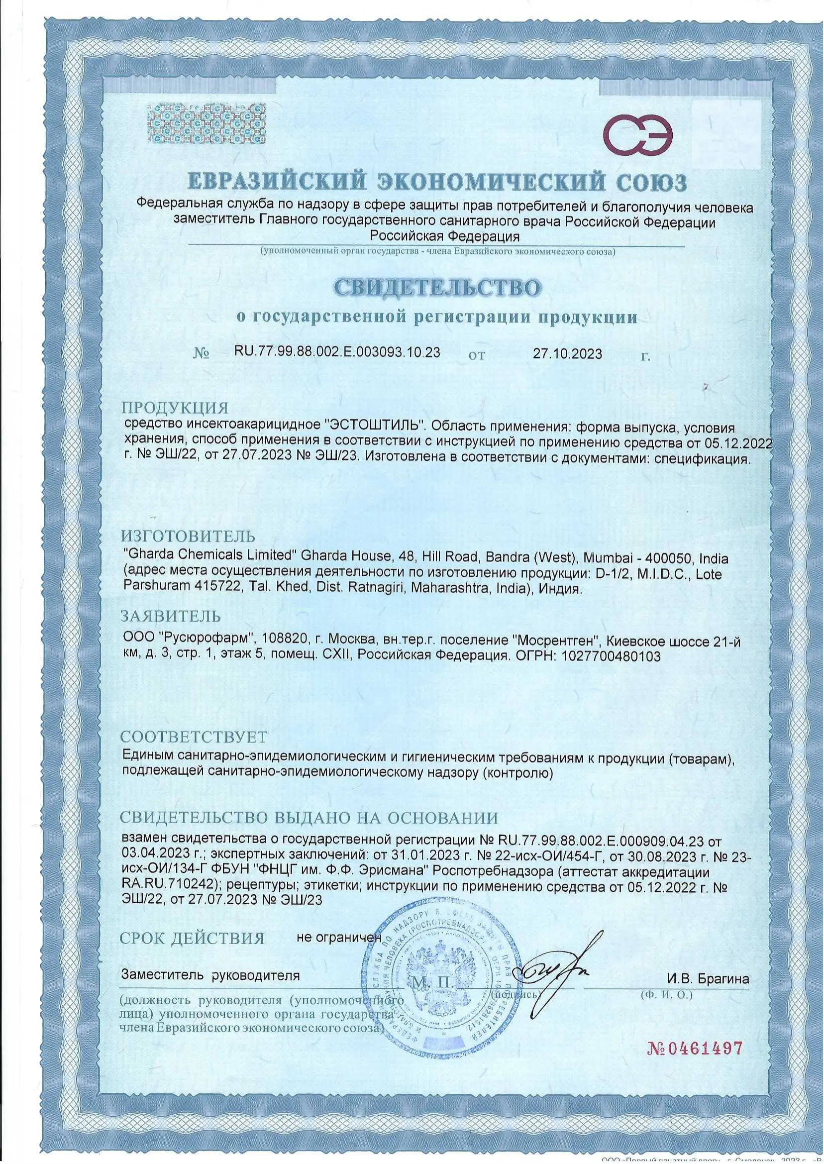 | Класс действующего вещества | Пиретроид |