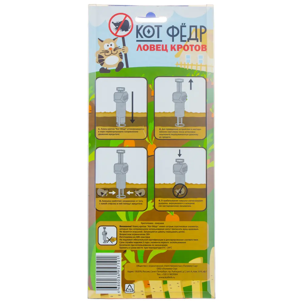 В интернет-магазине Насекомых.Net вы сможете купить кротоловку Кот Федр и множество других эффективных приспособлений для борьбы с вредителями на участке по самой доступной цене. Мы сотрудничаем только с официальными поставщиками, а потому можем гарантировать наилучшее качество всей продукции, представленной на сайте. Каждому клиенту гарантируется быстрая доставка в любой регион России. Ждем ваших заказов!