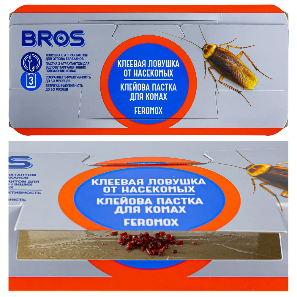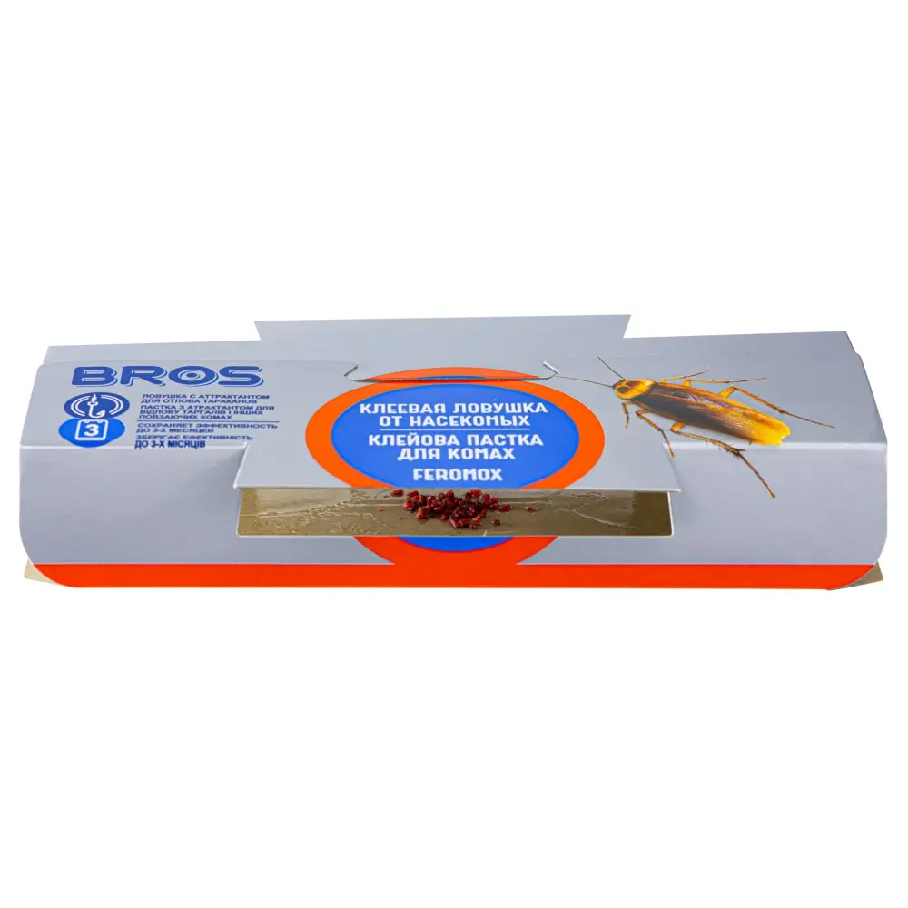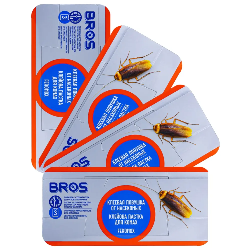Bros (Брос) клеевая ловушка от тараканов является средством для механического отлова насекомых. Всё, что вам понадобится для её использования – несколько простых движений руками. Придайте изделию необходимый вид и установите его в заранее выбранных местах. Теперь осталось только дождаться результата!