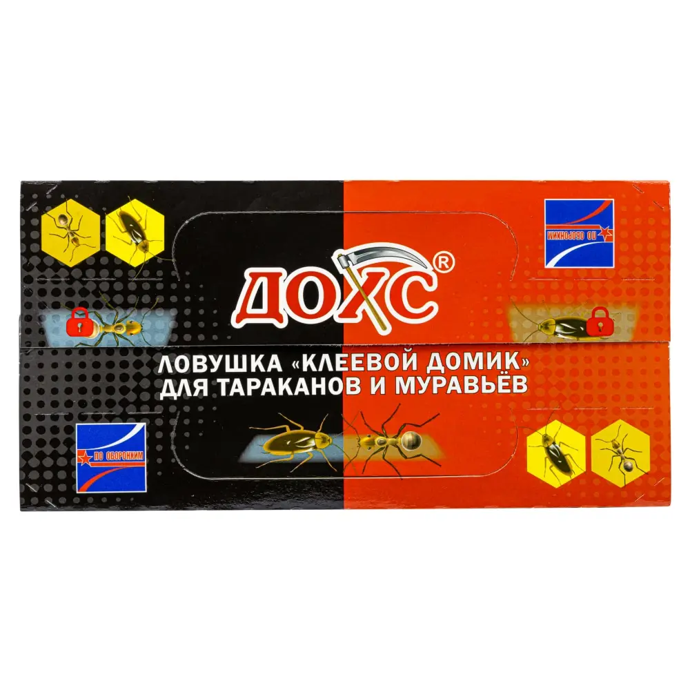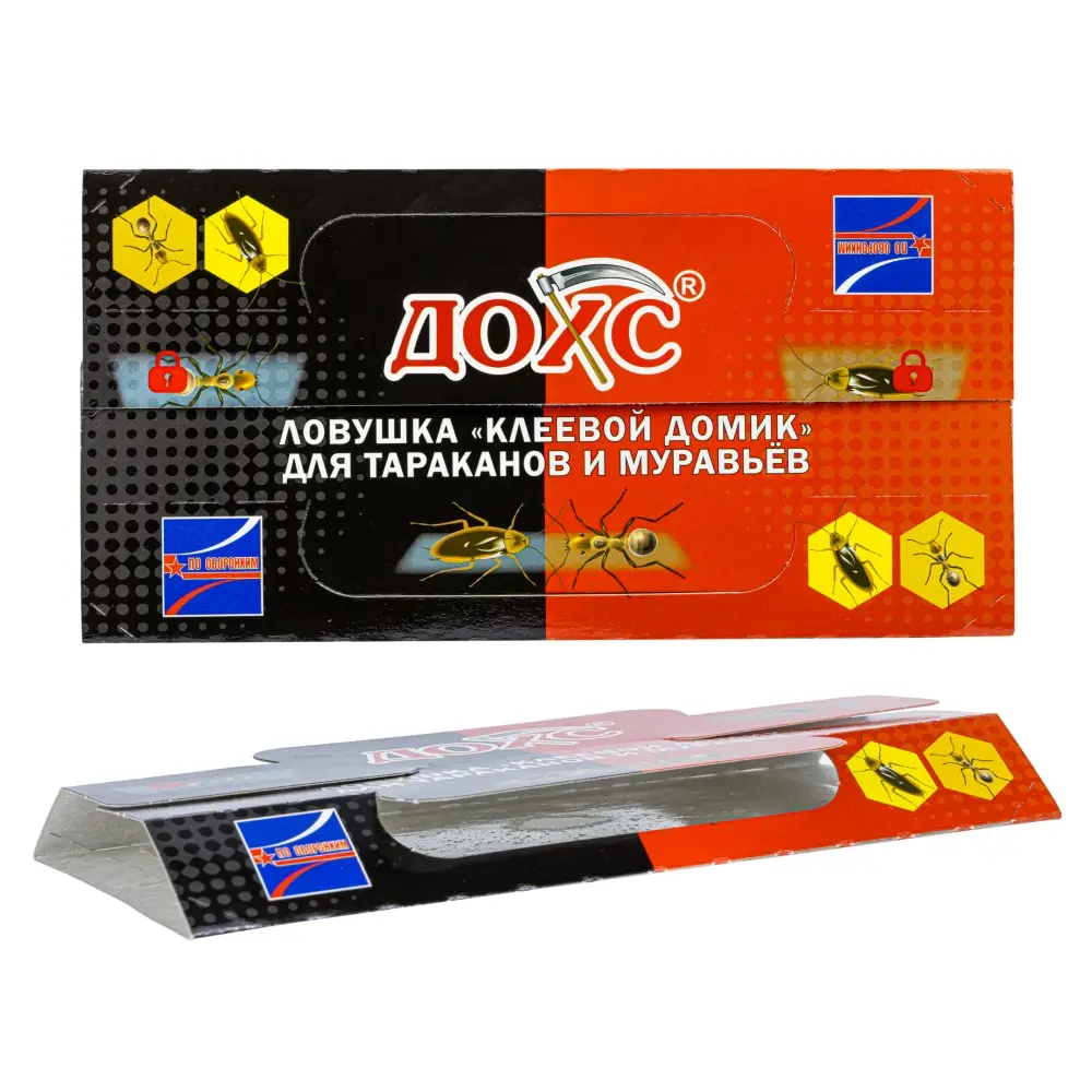 ДОХС клеевые ловушки от тараканов и муравьев — готовое к использованию средство механического отлова насекомых. Продукт разработан торговой маркой «Дохс» и произведен фирмой «ПО Оборонхим». Ловушки не содержат ядов и инсектицидов, за счет чего абсолютно безопасны для детей, домашних питомцев и окружающей среды. Именно поэтому их разрешено применять даже там, где использование химикатов запрещено санитарными нормами. Срок годности изделия составляет 36 месяцев.