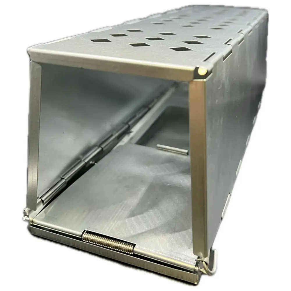 Складная крысиная живоловка Mr.Mouse представляет собой компактную клетку, специально разработанную для безопасного и гуманного отлова крыс. Её размеры в разложенном виде – 330×110×110 мм – оптимальны для размещения в местах вероятного появления грызунов, не занимая при этом много места. Конструкция живоловки проста и продумана: прочный металлический каркас обеспечивает долговечность, а чувствительный спусковой механизм гарантирует быстрое и надёжное срабатывание приманки. Благодаря складной конструкции, ловушку удобно хранить и транспортировать.