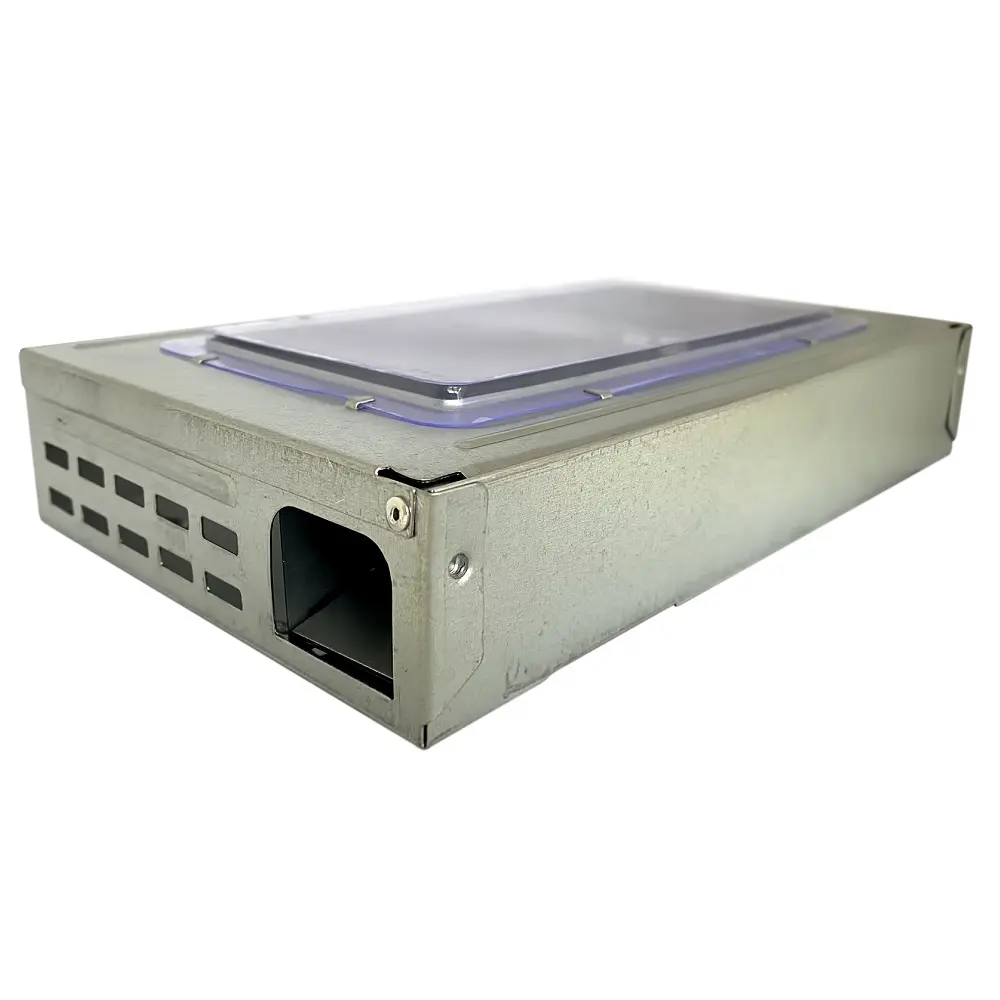 Представляет собой короб из оцинкованной стали с прозрачным пластиковым окном на верхней панели. Имеет два входа, оснащенных двойными клапанами, блокирующих вредителей внутри ловушки. Вентиляционные отверстия на торцах обеспечат доступ воздуха пойманным особям, что позволит впоследствии просто вывезти их в природные условия, чтобы не прибегать к уничтожению. Изделие отличается: