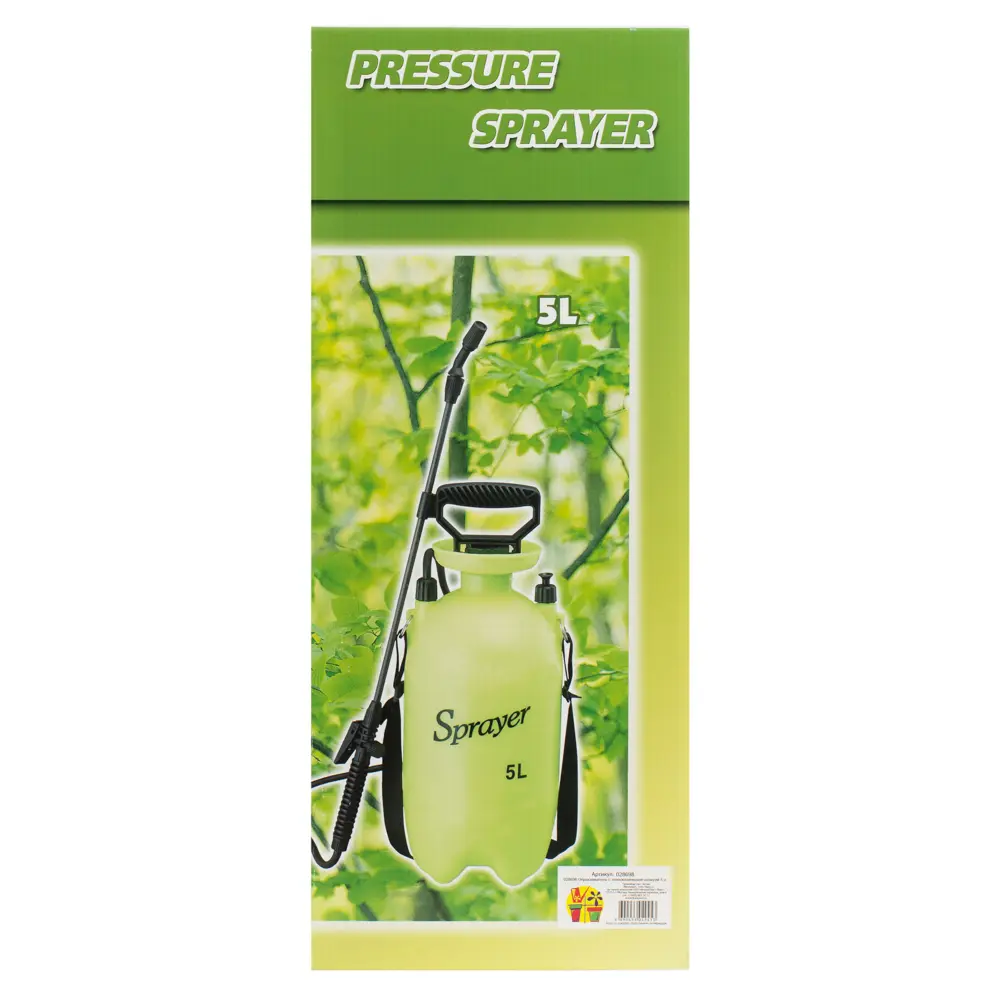 Ручной опрыскиватель Pressure Sprayer — отличное приспособление для равномерного распределения химикатов и удобрений по растениям. Объём бака составляет 5 литров. Устройство относится к помповому типу: в резервуар вручную накачивается воздух, создаётся давление, которое выталкивает жидкость через распылительную трубку. Благодаря мощному пневматическому насосу опрыскиватель способен распылять растворы на значительное расстояние.