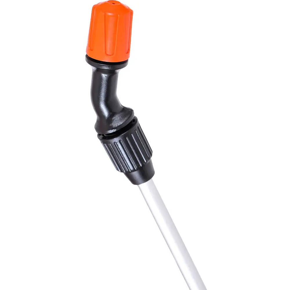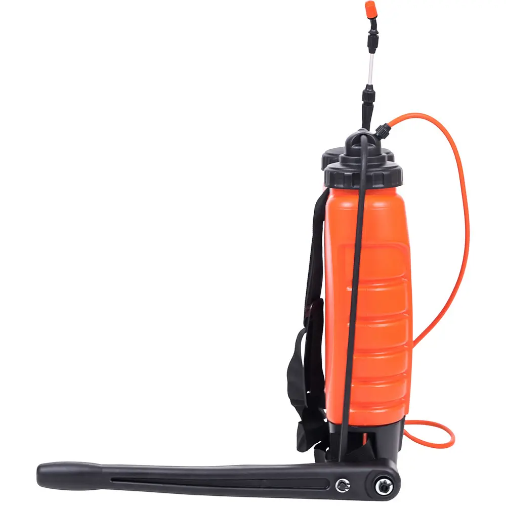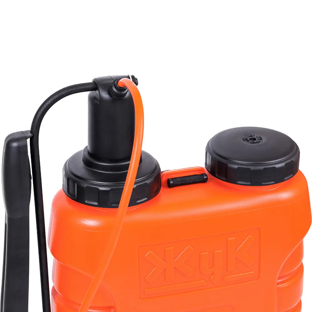 Ёмкость оранжевого цвета, изготовленная из устойчивого к воздействию химических препаратов пластика, идеально подходит для ухода за растениями. В комплект поставки входит пульверизатор с ручкой и соплом, позволяющим регулировать интенсивность струи и степень распыления. Используемые в производстве полимеры устойчивы к препаратам на кислотной или щелочной основе.