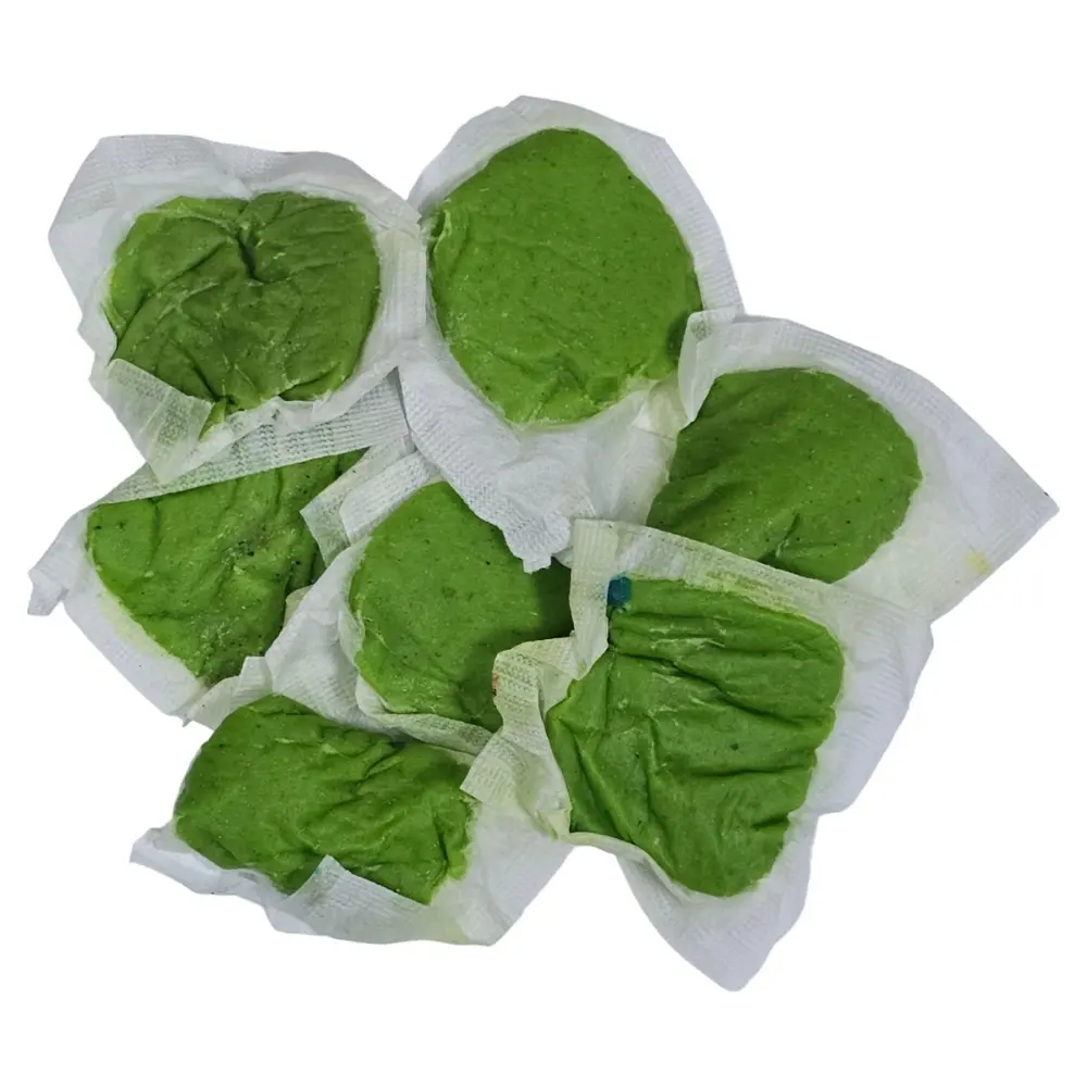 Российский производитель расфасовал родентицид по компактным полиэтиленовым пакетикам зеленого цвета на 200 г. Тестообразные приманки в упаковке могут иметь различный спектр оттенков: от бледного розового и до темного коричневого.