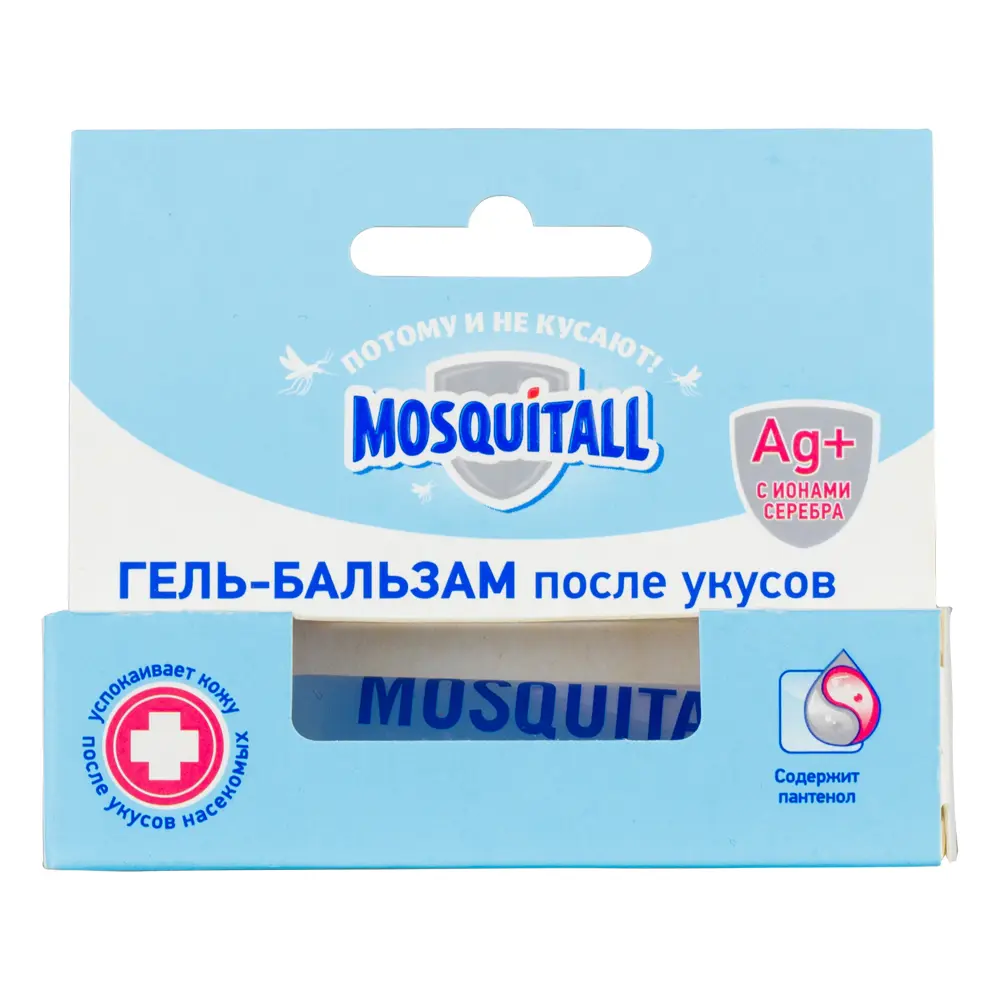 Гель-бальзам против укусов комаров Mosquitall представляет собой средство с антибактериальными компонентами. Попадая на кожу, они оперативно впитываются. Препарат выпускается в тюбиках объемом десять миллилитров. Состав наполнен противомикробными и регенерирующими ингредиентами. Высокая эффективность средства против укусов насекомых была подтверждена лабораторными исследованиями.