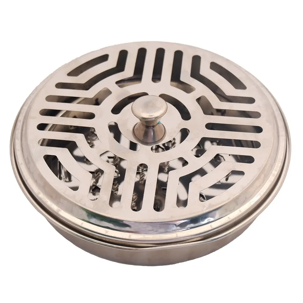 Металлическая подставка Аргус в виде круглого поддона дополнена железными зубцами, на которых спираль фиксируется. Сверху изделие закрывается крышкой с отверстиями, предназначенными для выхода дыма, содержащего антимоскитные вещества. Симметричное расположение отверстий обеспечивает равномерное распределение дыма.