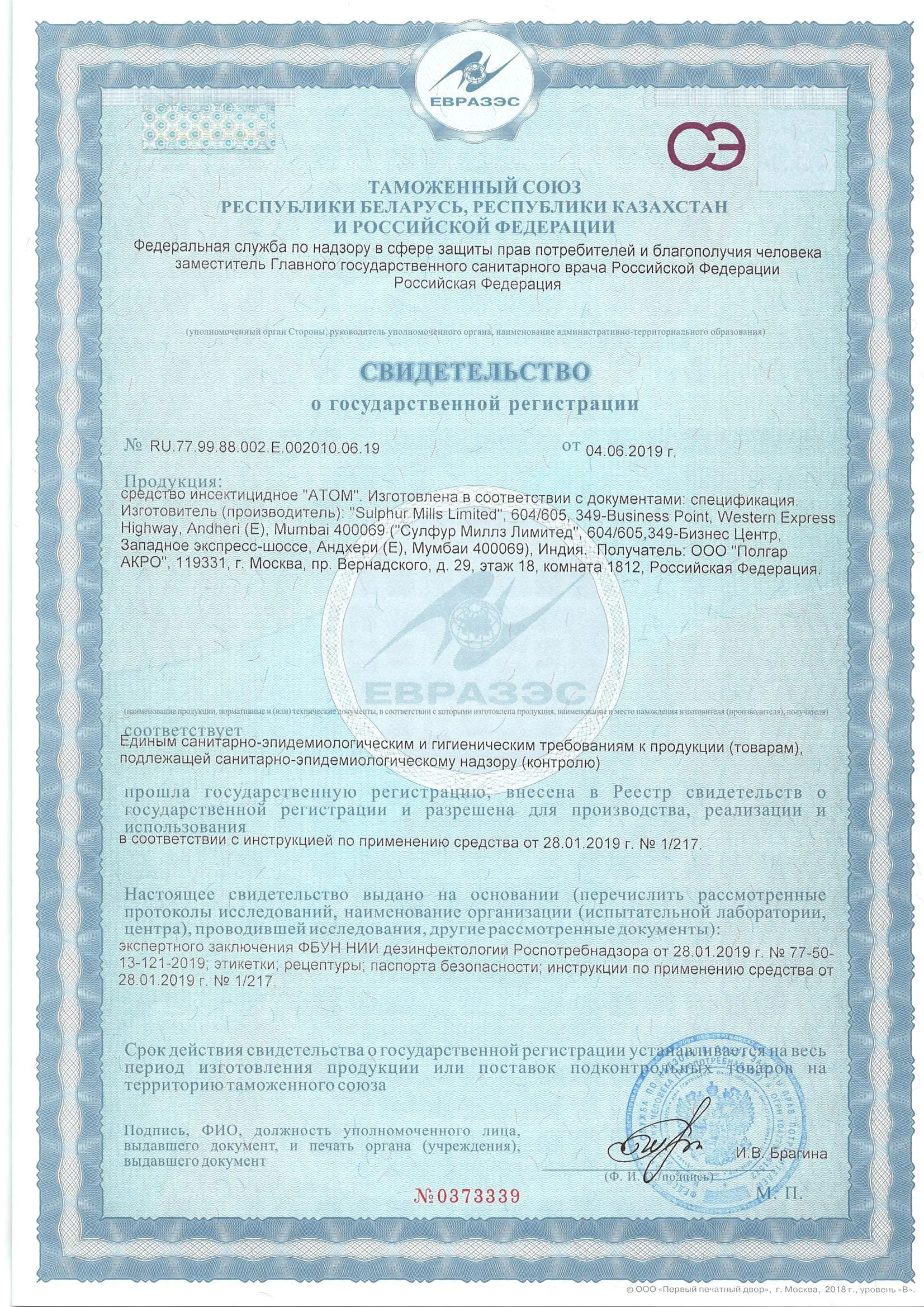 Инсектоакарицидное средство «Атом» (Дельта 25) предназначено для проведения профессиональной дезинфекции помещений, а также для применения населением в быту. Эффективно в борьбе с тараканами, блохами, постельными клопами и другими насекомыми в помещениях различного типа. Препарат выпускается в виде водорастворимого порошка в банке объёмом 100 мл. Высококонцентрированное средство экономично в использовании, не имеет запаха.