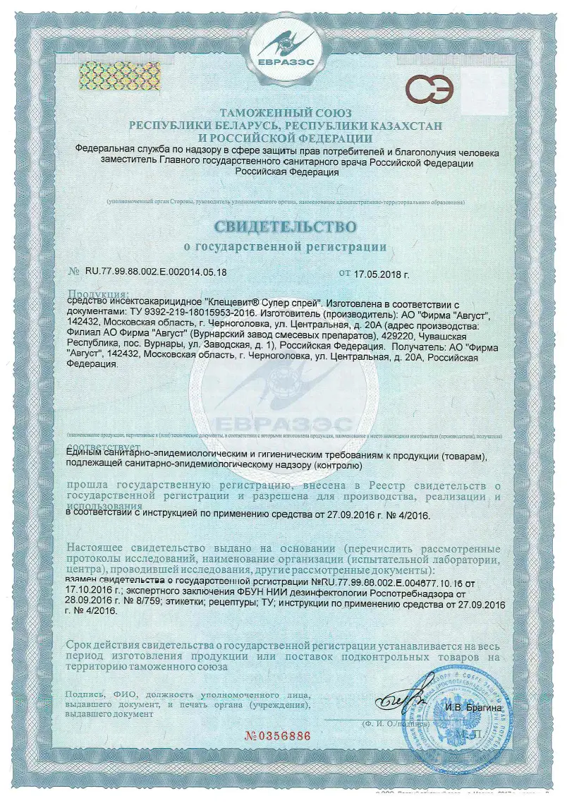 Avgust (Август) Клещевит Супер – это концентрированный акарицидный препарат, предназначенный для уничтожения иксодовых клещей на приусадебных и садово-огородных территориях. Средство производится в России компанией АО «Август». Акарицид в форме концентрата эмульсии расфасован в удобные пластиковые флаконы емкостью 100 мл.