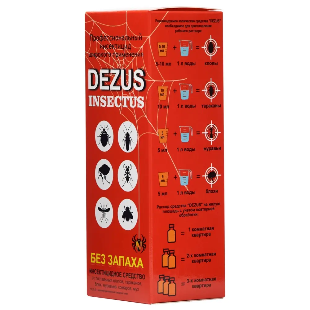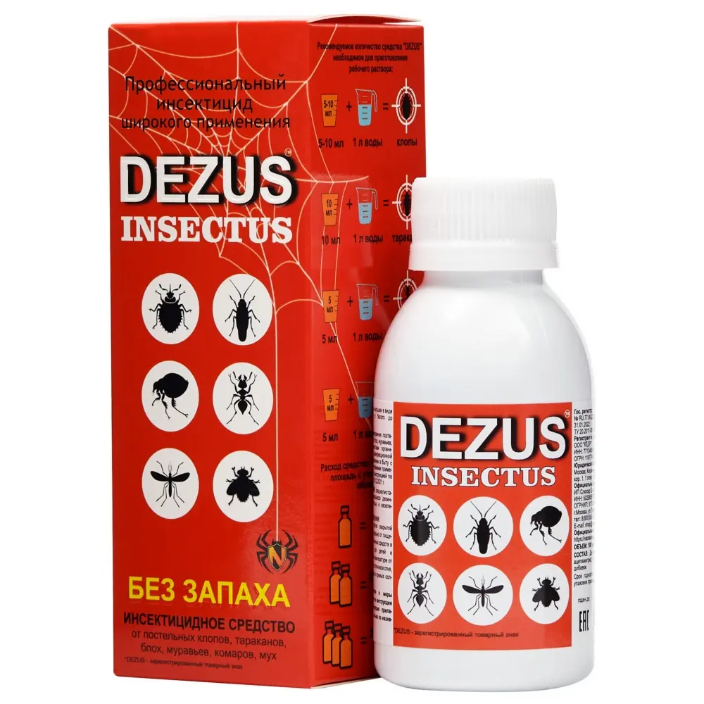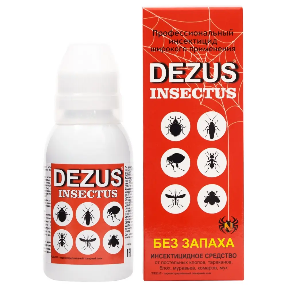 «DEZUS» – средство для борьбы с насекомыми: постельными клопами, тараканами, блохами, иуравьями, комарами, мухами имаго и личинками, чешуйницами, осами и другими вредителями.