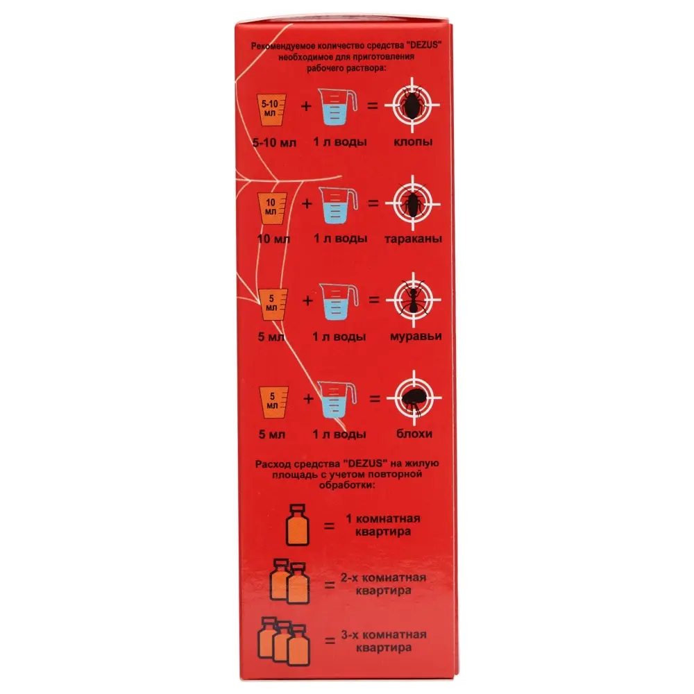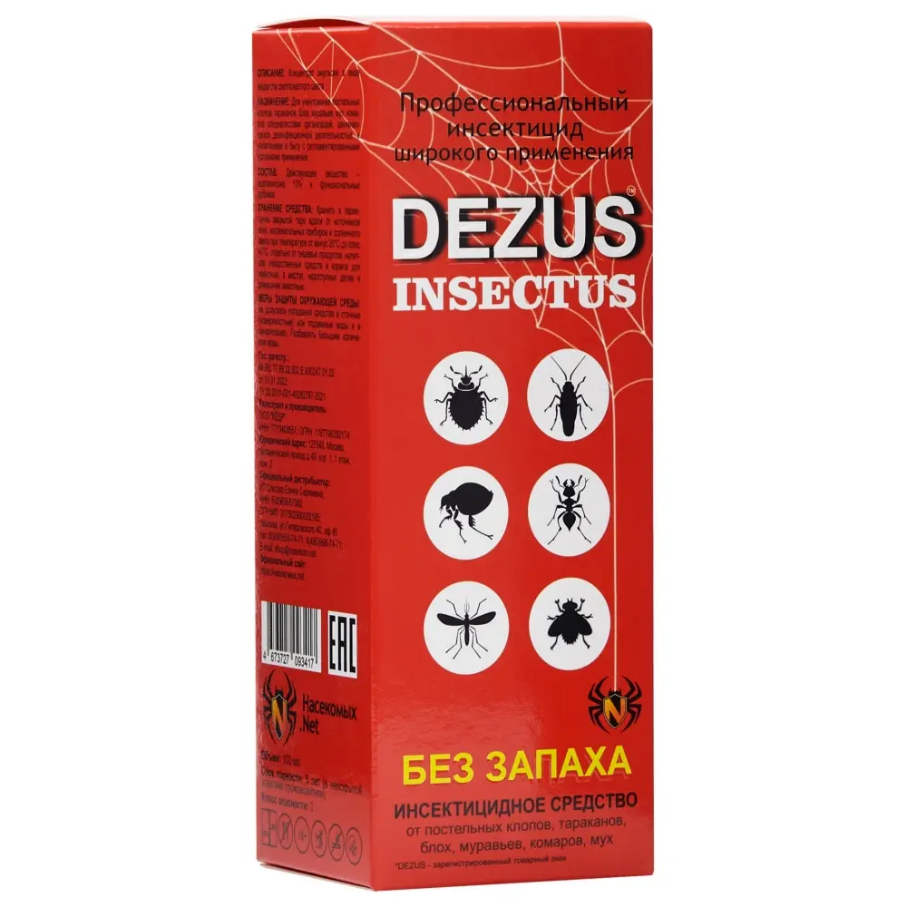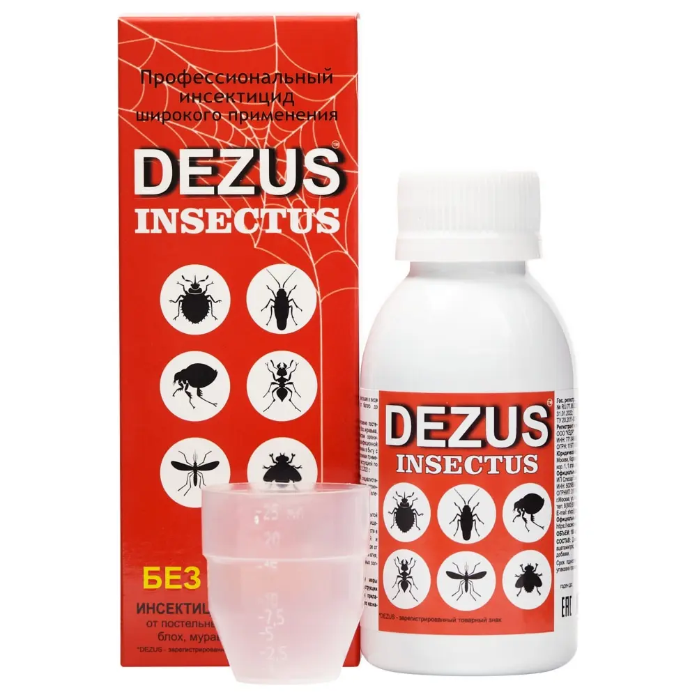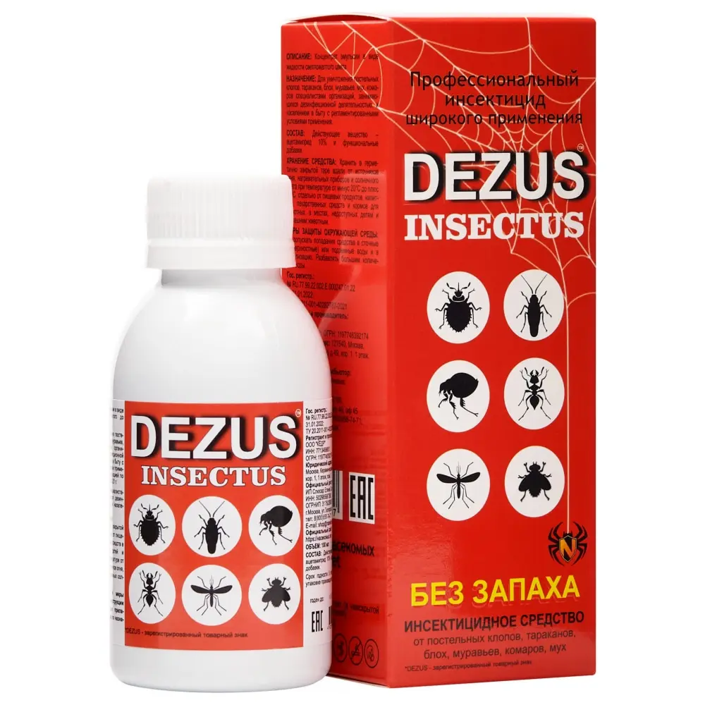 «DEZUS» – средство для борьбы с насекомыми: постельными клопами, тараканами, блохами, иуравьями, комарами, мухами имаго и личинками, чешуйницами, осами и другими вредителями.