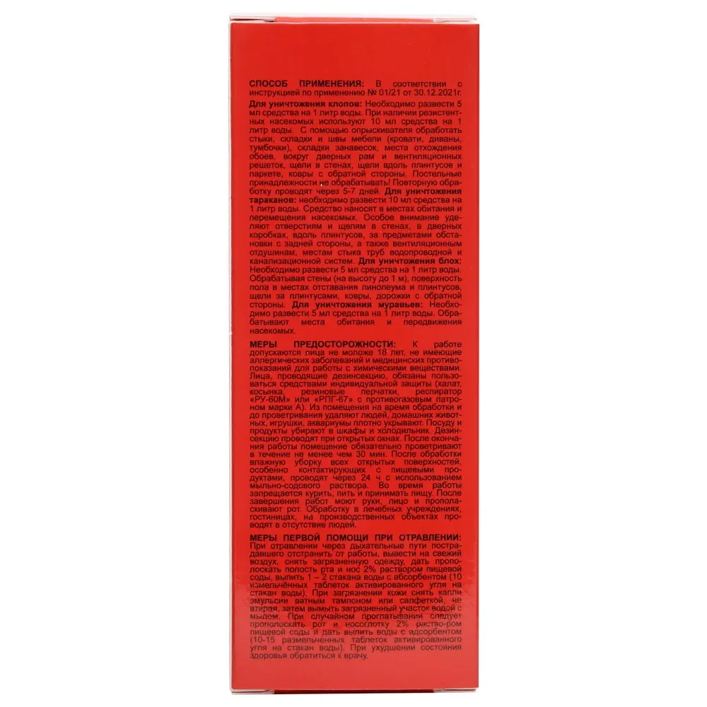 | Вредитель | блохи, клещи крысиные, клопы, клопы постельные, комары, мокрицы, муравьи, тараканы, чешуйницы |