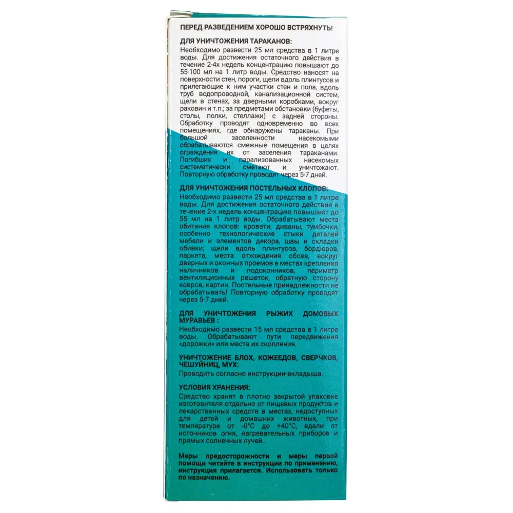 Средство подходит для обработки объектов коммунально-бытового назначения, предприятий общественного питания, производственных помещений, медицинских и детских организаций, подвальных помещений, а также для бытового использования в частных домах и квартирах. Наиболее эффективен против тараканов.