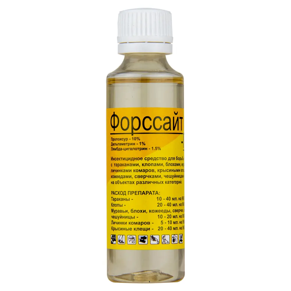 Форс Сайт ПРО — универсальный инсектицидный концентрат эмульсии на основе трёх мощных действующих веществ: пропоксура, дельтаметрина и лямбда-цигалотрина. Препарат создан для комплексного уничтожения широкого спектра вредителей — клопов, тараканов, блох, муравьёв, мух, комаров и клещей — в жилых, производственных и медицинских учреждениях.
