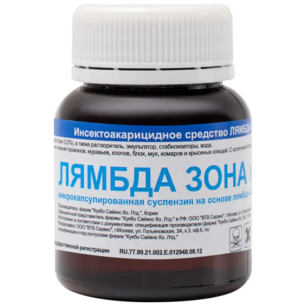 Используйте средство Лямбда Зона, чтобы в считанные дни очистить помещение. Инсектицид представлен в форме микрокапсулированной суспензии, произведённой в Южной Корее по инновационным технологиям. Один флакон содержит 50 мл концентрата, чего достаточно для обработки помещения площадью до 120 м².
