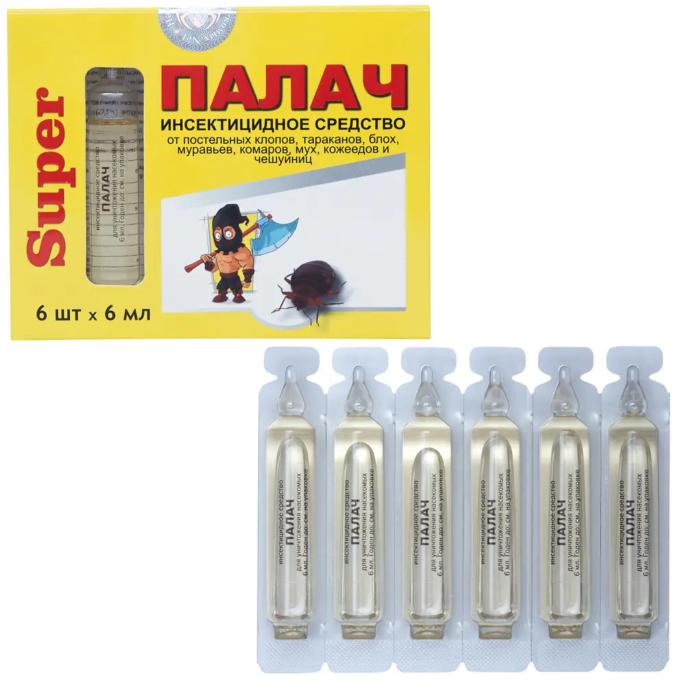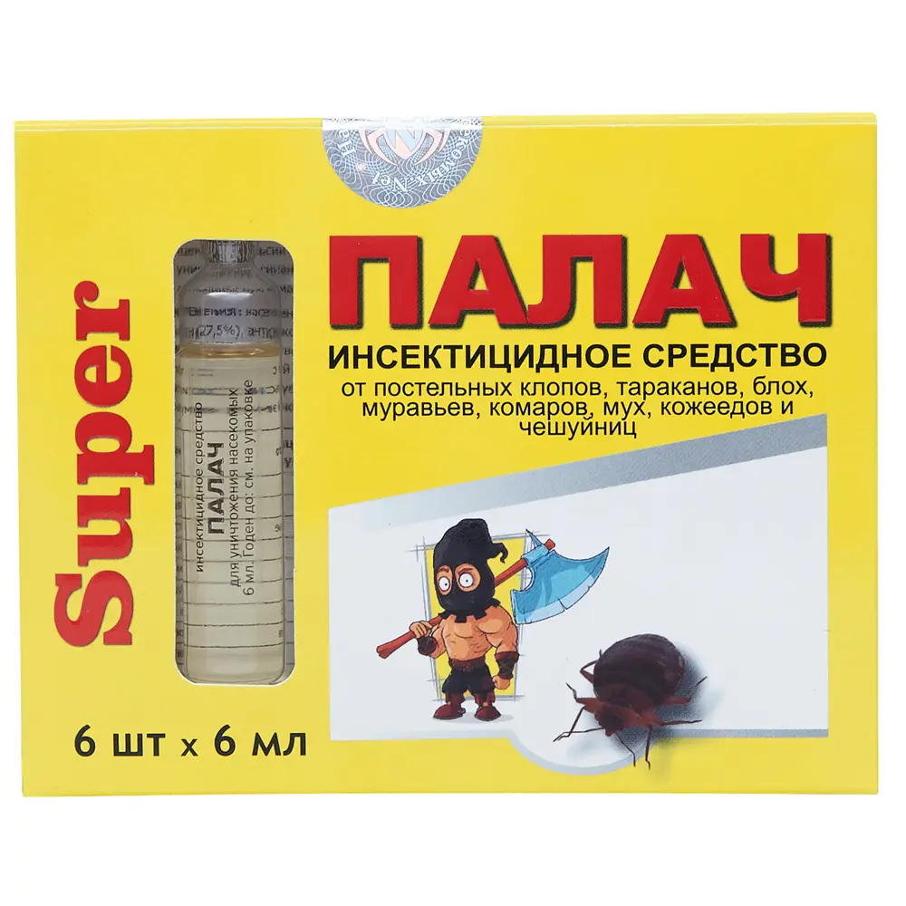 Палач "Super" средство от клопов, тараканов, блох, муравьев, 6 ампул