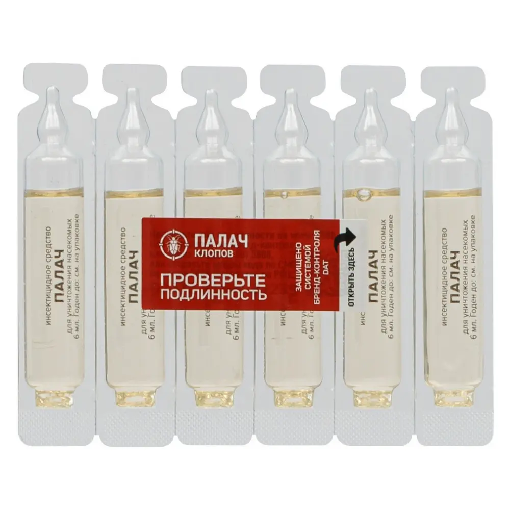 Препарат Палач представляет собой масляную водорастворимую эмульсию в пластиковых флаконах ёмкостью 6 мл с запахом керосина. Инсектицидное средство – продукт, разработанный немецкими химиками. В России препарат Палач производится по лицензии.