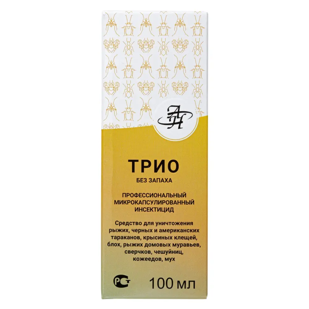 Трио средство от клопов, тараканов, блох, муравьев, комаров, мух, кожеедов, чешуйниц, 100 мл