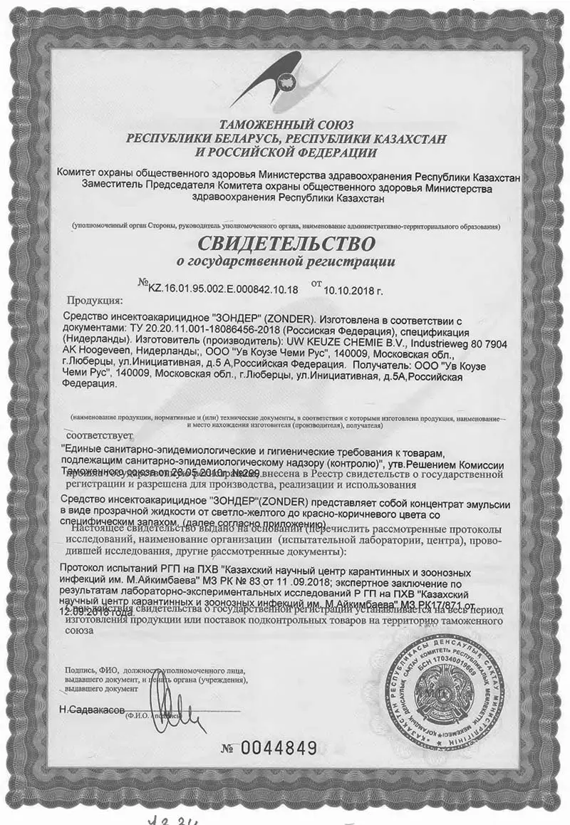 Zonder Green – голландское инновационное средство для профессионального уничтожения кровососущих насекомых, муравьёв, тараканов и ос. Хотя производитель позиционирует его как узконаправленный инсектицид, он прекрасно справляется с широчайшим спектром вредителей. Эффективность доказана против насекомых на любой стадии развития (исключая яйца), а результаты заметны уже через 3–5 дней.